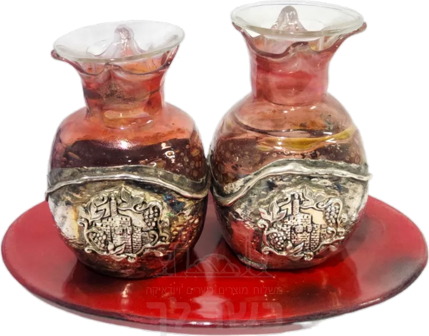 זוג רימונים בצורת פמוטים, עשוי כסף מצופה זכוכית,אדום, עבודת יד - he.kosherlekha.ru