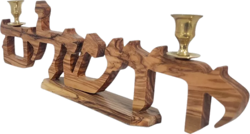 פמוטי עץ זית, עם תמונה של הכתובת ירושלים בעברית - he.kosherlekha.ru