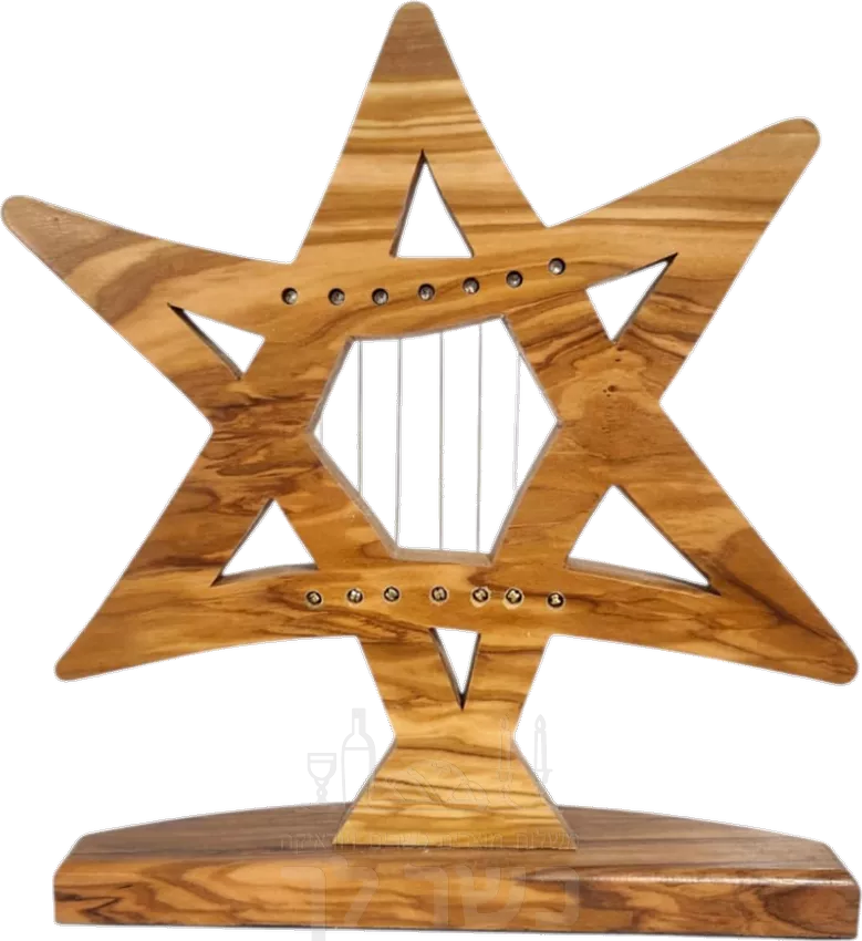 כינור דוד עשוי עץ זית עם תבנית "מגן דוד", בעבודת יד - he.kosherlekha.ru