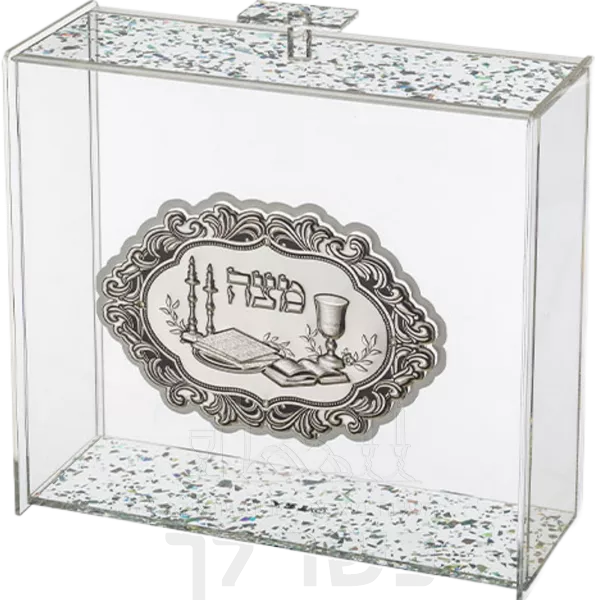 כלי למצה מפרספקס שקוף עם נצנצים כסף ופלקטה 21x23 ס"מ - he.kosherlekha.ru