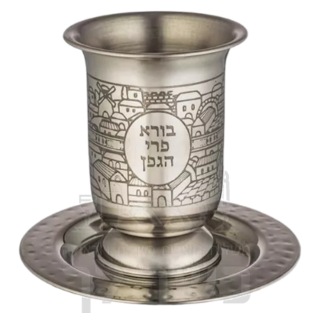גביע קידוש מהודר מנירוסטה 10 ס"מ עם חריטה ורגל - he.kosherlekha.ru
