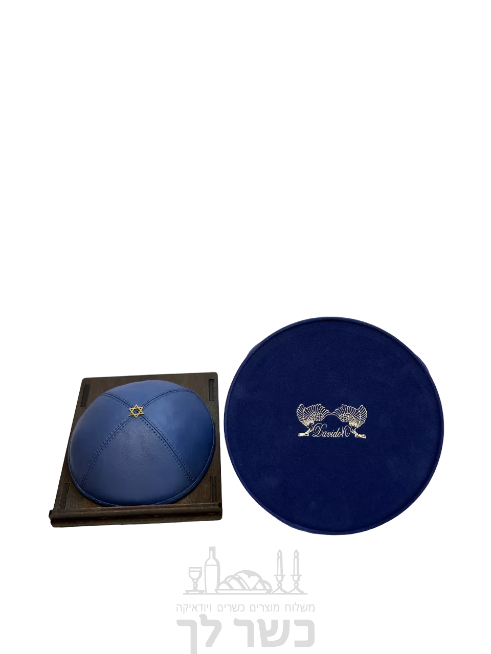 כיפה מגן דוד, עור כחול כהה 15 ס"מ - he.kosherlekha.ru