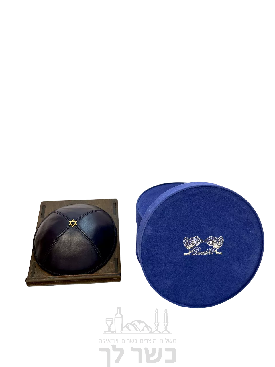 כיפה מגן דוד, עור כחול כהה 15 ס"מ - he.kosherlekha.ru
