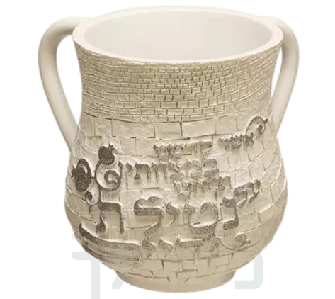 כוס כביסה בז' עם ברכה, 14 ס"מ - he.kosherlekha.ru