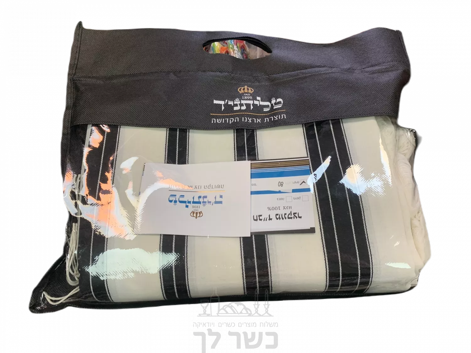 טלית גדול עם פסים שחורים (חב " ד), גודל 70, צמר - he.kosherlekha.ru